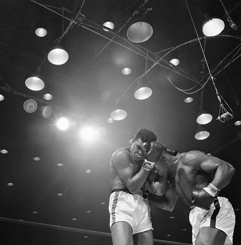 Sonny Liston, right, lowers his head and works in close during 6th round of heavyweight championship fight with Muhammad Ali (Cassius Clay) in Miami Beach, Fla. on Feb. 25, 1964. Liston suffered a cut left eye and a strained left shoulder before the fight was stopped at the end of the round.