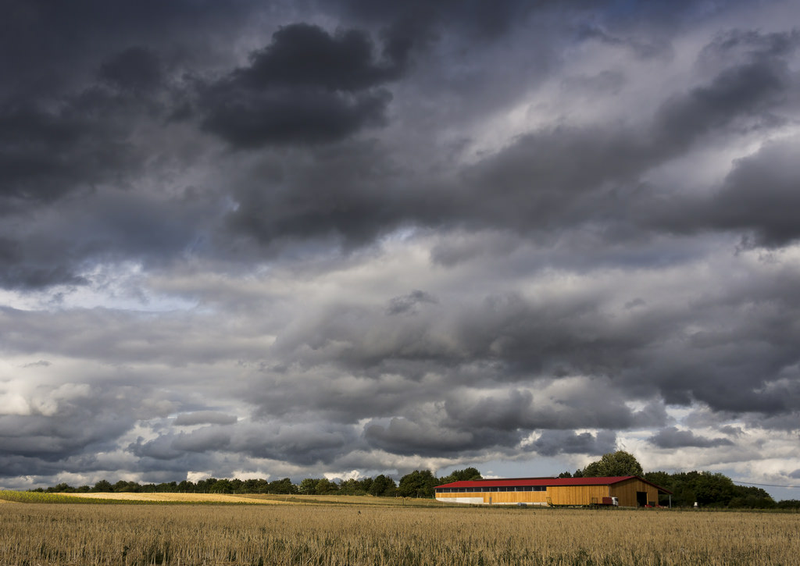 Über den abgeernteten Felden im Heckengäu ziehen Regenwolken auf.